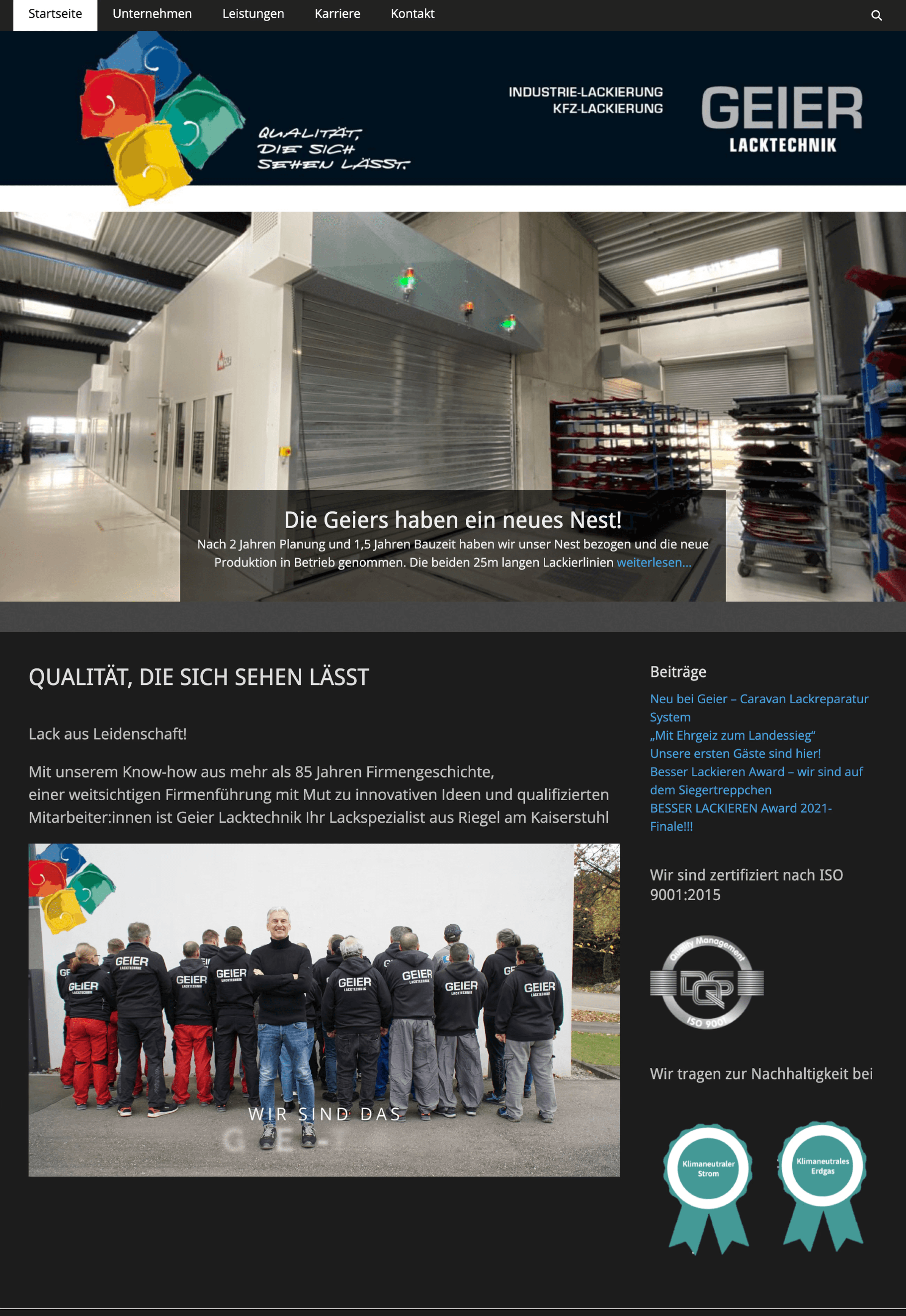 Endlich ein Webauftritt – der zur Qualität von Geier Lacktechnik passt
