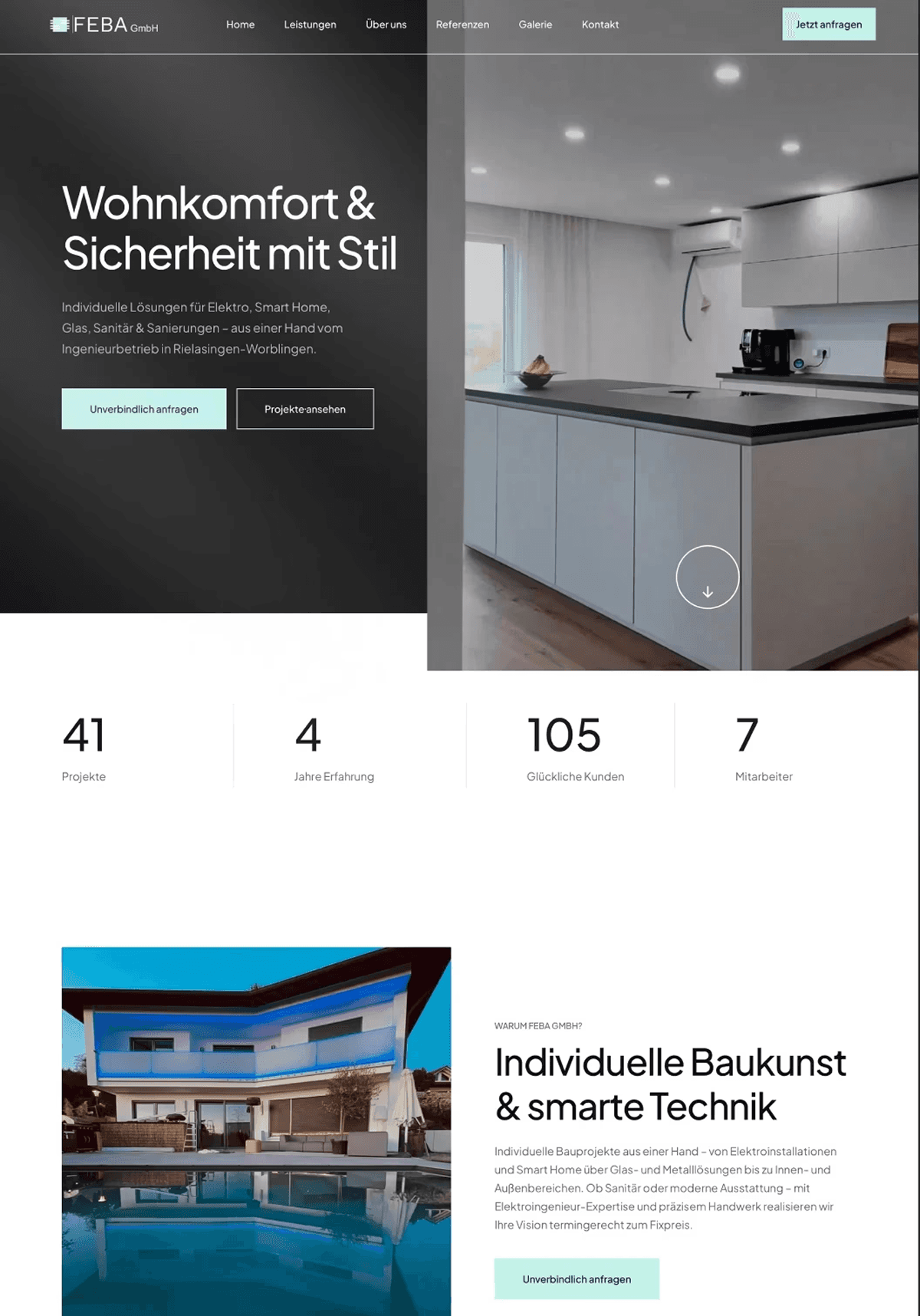 Ich helfe Handwerksbetrieben, Bauunternehmen und Mittelständlern, ihre Stärken und Qualität sichtbar zu machen. Klar positioniert, hochwertig aufgebaut und so strukturiert, dass nicht mehr Anfragen entstehen, sondern die richtigen. Von Baden Württemberg aus betreue ich Unternehmen im gesamten deutschsprachigen Raum.